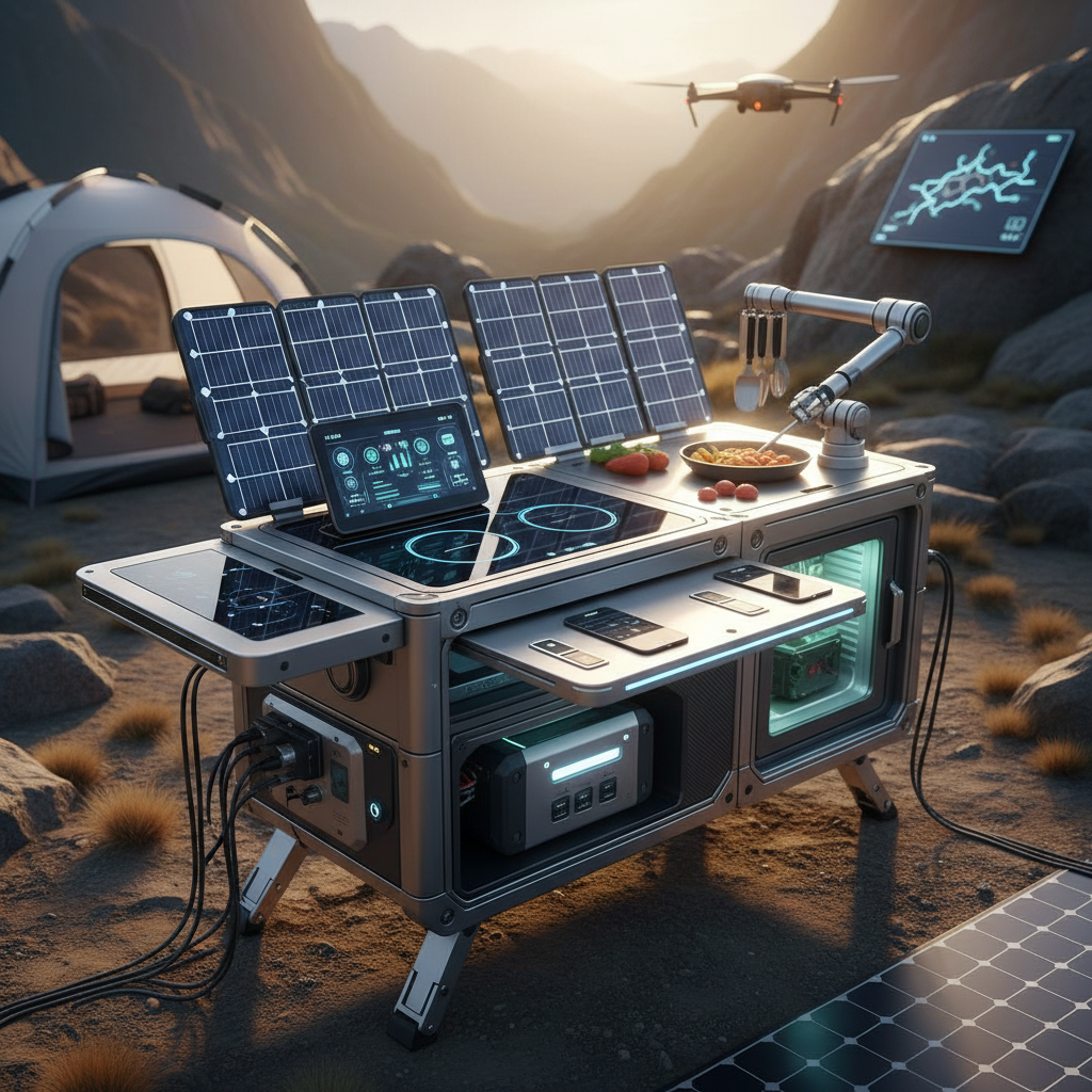 Nowoczesne kuchnie kempingowe stawiają na ekologię, kompaktowość i zaawansowane rozwiązania technologiczne. Hitem sezonu są płyty indukcyjne zasilane panelami słonecznymi, stacje ładowania urządzeń, inteligentne organizery i systemy cichego domykania szafek (OutdoorTechLab, 2024).